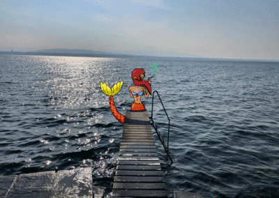 Mes photos, sont visitées par ce que je nomme « les créatures », issues directement de mon imagination. Elles sont là pour apporter une touche positive à notre monde par leur présence loufoque.
